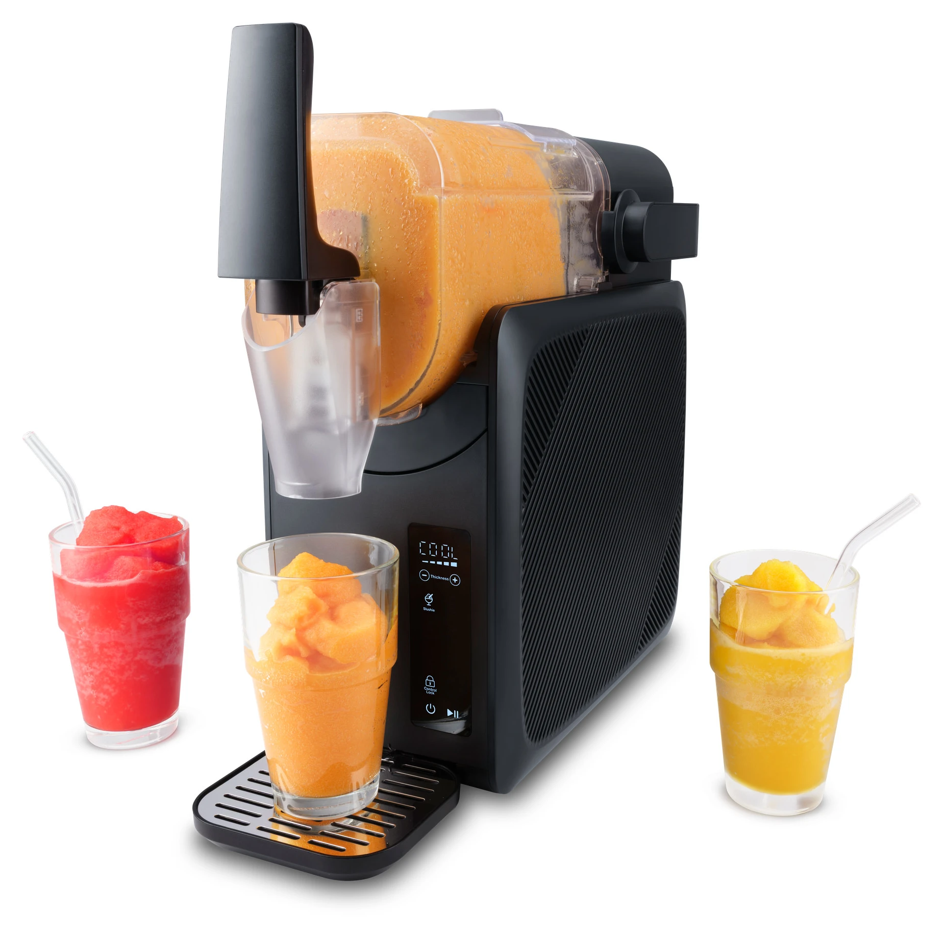 Díky plně automatickému chlazení a šesti chytrým programům jsou vaše nápoje hotové za pouhých 15 až 40 minut. Žádné předchlazování, žádné čekání, stačí spustit a vychutnat si. S efektivním užitným objemem 1,5 litru (kapacita 2 litry) můžete snadno poskytnout rodině a přátelům osvěžující nápoje. A protože chutě jsou stejně individuální jako každá příležitost, lze vybrat z pěti textur: od nádherně krémové po osvěžující křupavou.
